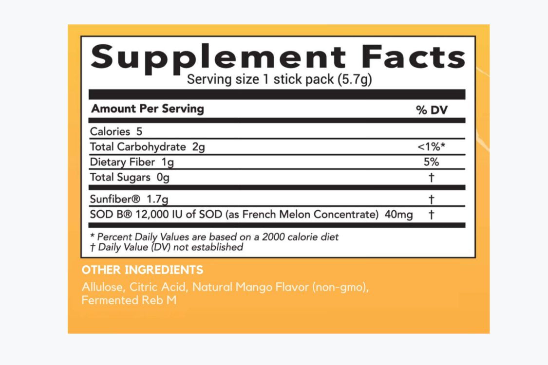 SkinSips® is crafted from a handful of clean, clinically proven ingredients including 12,000 IU of SOD B® from French melon concentrate and Sunfiber®, a prebiotic soluble fiber that supports digestive balance and gut health.
